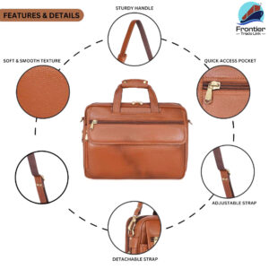 The FRONTIER Leather Laptop Messenger Bag is not limited to laptops alone. It effortlessly accommodates your daily necessities, making it a versatile business briefcase. Whether you’re heading to the office, a business meeting, or a coffee shop, this messenger bag is your reliable companion for any occasion.
